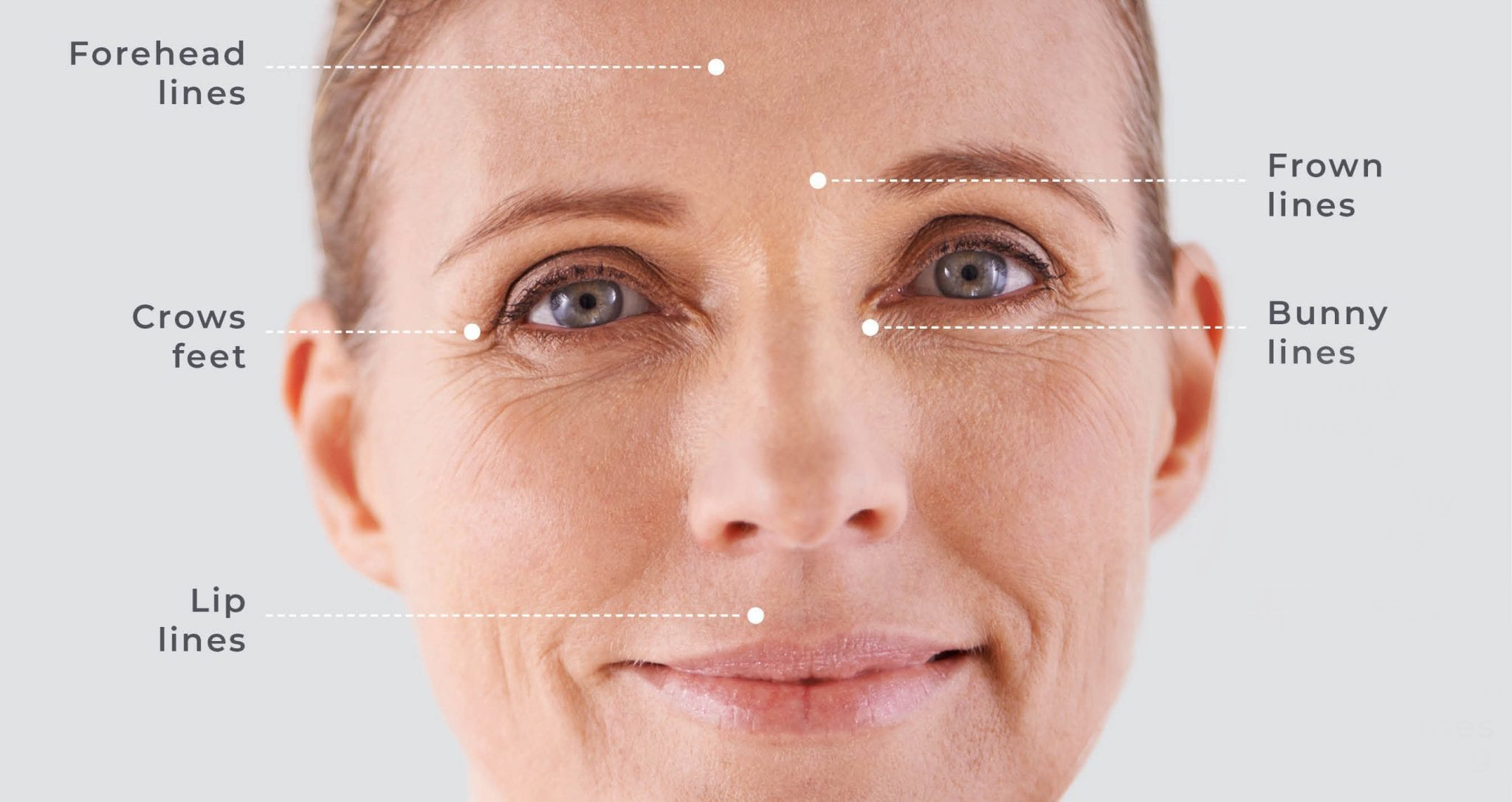 Treat forehead lines, frown lines, crows feet, lip lines, & more!
